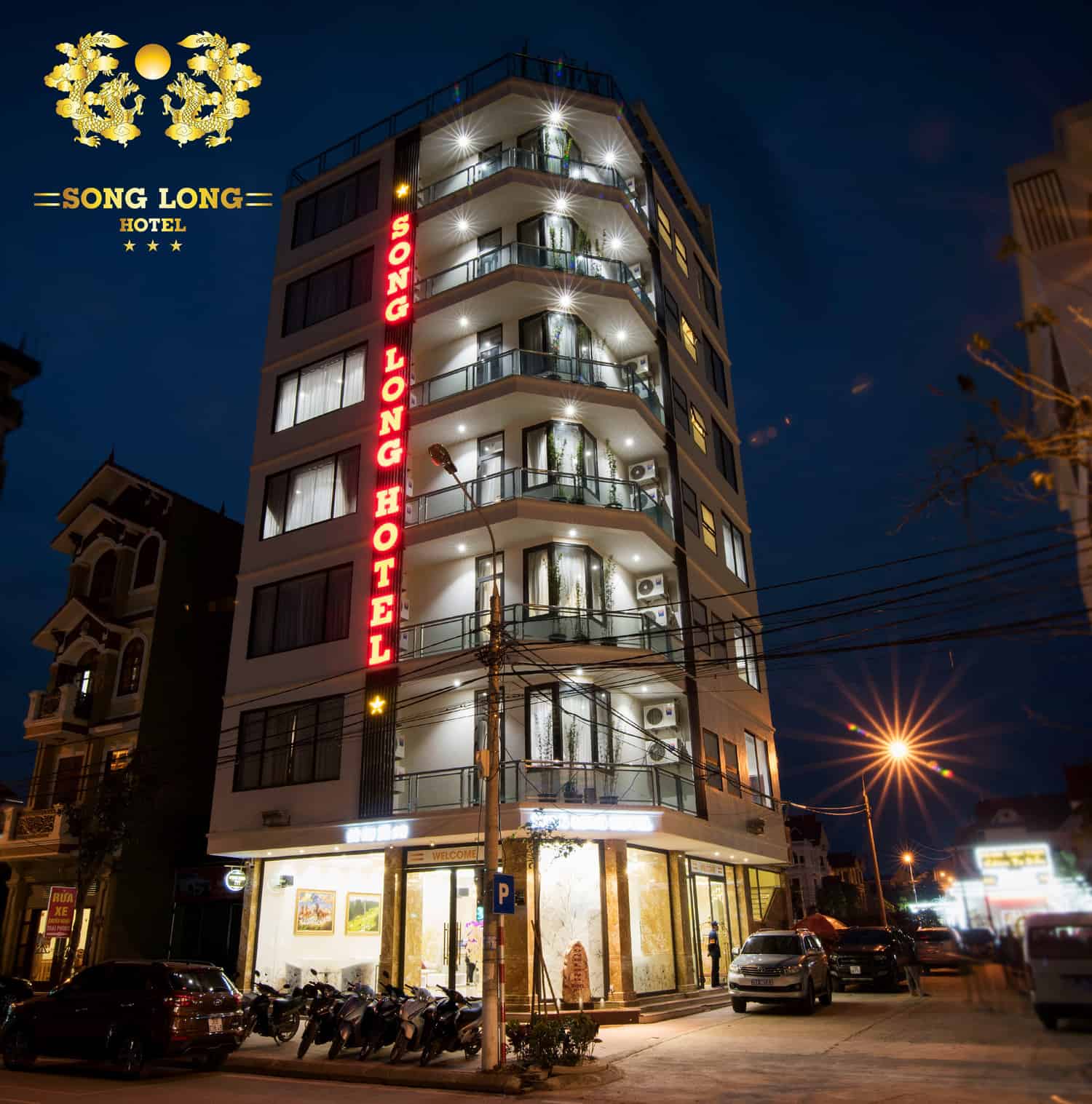 Khách sạn Song Long được xây dựng với chất lượng phòng theo tiêu chuẩn 3 sao, nội thất hiện đại đa dạng với 3 loại phòng Deluxe, Double, Superior đa dạng phù hợp nhiều nhu cầu lưu trú công tác, du lịch, nghỉ ngơi. Đội ngũ nhân viên khách sạn Song Long được đào tạo chuyên nghiệp, nhiệt tình, vui vẻ, dịch vụ tiêu chuẩn cùng 3 loại ngôn ngữ giao tiếp Tiếng ...